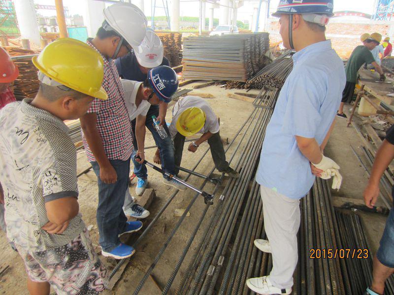 南外環(huán)項(xiàng)目辦根據(jù)江西省交通工程質(zhì)量監(jiān)督站《關(guān)于加強(qiáng)滾軋直螺紋鋼筋機(jī)械連接施工質(zhì)量控制的通知》文件精神,在第九次生產(chǎn)調(diào)度會(huì)上明確 A1標(biāo)為滾軋直螺紋機(jī)械連接整治示范點(diǎn)。
