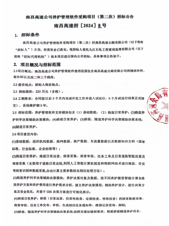 南昌高速公司養(yǎng)護管理軟件采購項目(第二次)招標(biāo)公告