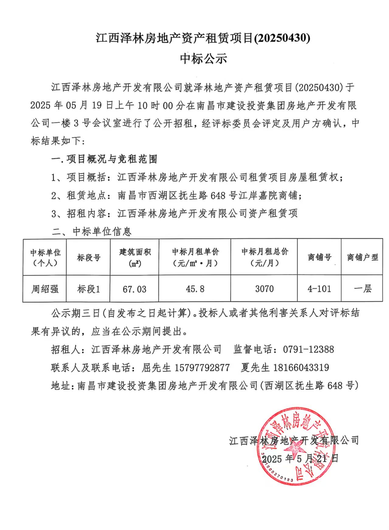 江岸嘉院商鋪中標結(jié)果公示